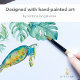 Tarjeta De Visita Cuadrada Acuarela de tortuga marina Vegetación tropical