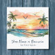 Tarjeta De Visita Cuadrada Acuarela Tropical Palm Tree Beach Sunset
