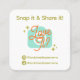 Inserción de tarjeta con ajuste rápido y compartido con imágenes de cámara centradas en el corazón e iconos de medios sociales.
