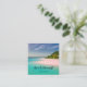 Business cards with a beautiful photograph. A scenic tropical beach with aquamarine water and a white sandy beach with a lush forest in the back. A solitary umbrella available for those who love seclusion.