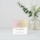 © 2023 Socialite Designs Inc. & LICENSORS. Esta elegante tarjeta de visita para artistas de maquillaje y azotes tiene hermosos elementos de diseño dorados, plateados y rosados que destacan entre la multitud. Úsalo para promocionar tu profesión.