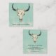 Tarjeta De Visita Cuadrada Boho Floral Cow Skull on Turquoise