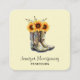 Tarjeta De Visita Cuadrada Boots rústicos de vaquero con girasoles
