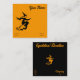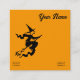 Tarjeta de visita cuadrada o tarjeta de llamada personal en un fondo naranja con una bruja voladora aterradora. En el reverso de la tarjeta, los colores se invierten. Es fácil personalizar ambos lados con los detalles de tu propia bruja o negocio mágico. Imágenes prediseñadas de la composición de Zazzle Fonts por Alma Wad. Viene 100 por envase.