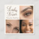 Tarjeta De Visita Cuadrada Chic Mocha Brown Cream Script 3 Photo Lashes Brows