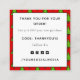 Spread festive cheer with this Christmas thank you card featuring a bold red background and hand-drawn green tree pattern, paired with elegant black script. Ideal for holiday orders, small businesses, or seasonal gift packaging. A perfect finishing touch for connecting with customers during the holidays.