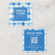 Tarjeta De Visita Cuadrada Classic Blue and White Gingham Checkered , QR Code