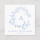 Tarjeta De Visita Cuadrada Código QR azul Pastel Monograma Escudo floral
