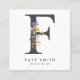 Este diseño presenta una inicial de monograma rodeada de flores silvestres secas rústicas. Personalice con su nombre e información comercial.