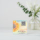 La tarjeta de visita floral de este instructor de yoga tiene un girasol acuático amarillo sobre un fondo colorido. Personalízalo con tu nombre, detalles de contacto y código QR. Para editar más, haga clic en el vínculo "personalizar más adelante" y utilice la herramienta de diseño para cambiar el estilo, los colores y el tamaño del texto. Acuarela original © Michele Davies.