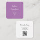 Tarjeta De Visita Cuadrada Código QR Simple Boho Flor Púrpura Botánica