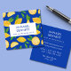 Colorida tarjeta de visita moderna con limones cítricos sobre un fondo azul colorido. Personalizar con sus propios datos de contacto y título de trabajo. Por favor, contáctame si necesitas más ayuda con la personalización. Obra de arte original de artistas que son propietarios de obras de arte digital. © Zoe Chapman Design