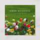 Muestra tu negocio o servicios con este colorido borde floral primaveral lleno de tulipanes y narcisos con un exuberante césped verde detrás. Este vibrante diseño floral también sería una atractiva tarjeta personal.