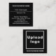 Tarjeta de visita que puede personalizar para que sus clientes o clientes encuentren fácilmente su dirección de negocio e información de contacto. Los colores de diseño y la forma son textos blancos sobre fondo negro y forma cuadrada. Los contenidos en la parte delantera son información de textos sin formato y en la parte posterior están su nombre comercial y logotipo. Para personalizar de esta tarjeta de visita, escriba su nombre de negocio, su nombre, su título, dirección, número de teléfono, correo electrónico, sitio web o página de medios sociales y cargue su logotipo de empresa. Después de teclear textos y de subir el logotipo, por favor compruebe la apariencia en el frente y en el reverso. Si la apariencia le resulta agradable, puede realizar su pedido ahora. Si necesita cambiar el tamaño y mover los textos y el logotipo para que encajen en esta tarjeta de visita, cambie la herramienta de diseño. También puede realizar otros cambios en la herramienta de diseño según el aspecto de esta tarjeta de presentación que prefiera, como cambiar el color de fondo, el color de fuente y el estilo de fuente.