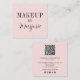 Tarjeta De Visita Cuadrada Elegant Blush Pink Black Script QR Code Makeup