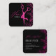Tarjeta De Visita Cuadrada Elegant Floral Black & Pink Hair Salon Beauty