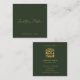 Tarjeta De Visita Cuadrada Elegant Green Handwritten Script Gold Text QR Code