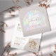 Eleva tu marca con nuestras impresionantes tarjetas de visita cuadradas con un atractivo fondo holográfico y un elegante diseño de arco. Perfecto para profesionales de la belleza como estilistas de uñas, maquilladores y peinadores, esta plantilla le permite mostrar su información de contacto, sitio web y medios sociales con estilo. Da una impresión duradera y anima a tu clientela: ¡pide hoy mismo!