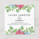 Tarjeta De Visita Cuadrada Elegante cabello de flores rojas y maquillaje