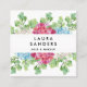Una elegante tarjeta de visita floral, perfecta para un consultor, estilista, propietario de una pequeña empresa y mucho más. Este elegante y moderno diseño botánico presenta un ramo de flores de color rojo, rosa, blanco y azul con hojas verdes.