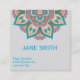 Una tarjeta de visita adecuada para un profesor de yoga o un instructor de yoga. Esta elegante y profesional tarjeta de visita tiene la imagen de una mandala colorida con un sencillo fondo gris. El color de fondo es completamente personalizable. Esta tarjeta puede ser personalizada para incluir su propia información personal, calificaciones y dirección de estudio.