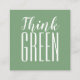Tarjeta de presentación ecológica, ecológica, orgánica y favorable al medio ambiente (en color verde grisáceo), de estilo minimalista, sencillo y moderno, con el texto siguiente: "Piensa verde". Disponible en varios colores verdes. Perfecto si crea o rediseña productos hechos a mano o si vende cualquier otro tipo de producto o servicio respetuoso con el medio ambiente. Cambie el texto en la parte posterior de la tarjeta, según sea necesario.