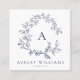 Tarjeta De Visita Cuadrada Escudo floral Naval Blue Monogram Profesional