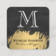 Tarjeta De Visita Cuadrada Faux Gold Brushed Monograma Lush Black