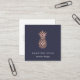 Elegante tarjeta de visita cuadrada con un falso ilustracion de Relieve metalizado dorado piña sobre un rico fondo azul de medianoche con dos líneas de texto personalizado en blanco. Añade la información de contacto al reverso. Incluye tres íconos de redes sociales de oro rosa y un campo para tu nombre de usuario.