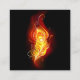 Una brillante pluma de pavo real hecha de fuego y llama sobre fondo negro.