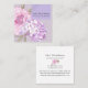 Las tarjetas de presentación florales elegantes y modernas en una forma cuadrada única presentan una peonía de color y hortensia con su nombre o nombre de la empresa y título que se muestra en una superposición de lavanda lila transparente. Agregue toda su información de contacto en el reverso. Perfecto para planificadores de bodas, planificadores de eventos y otros profesionales de ocasiones especiales.