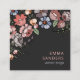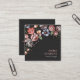 Flores florales brillantes de estilo pintado a mano en una tarjeta de visita cuadrada única negra con tu nombre y título. Tonos de melocotón, rosa, verde, azul y violeta pastel. Personalizar en la parte posterior de la tarjeta. Tu nombre y título son de color, íconos de los medios sociales en la parte de atrás, de color rosa melocotón, para que coincidan con los florales.