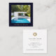 Dé una impresión duradera con nuestras tarjetas de visita de fotografía Minimalistas modernas, que incluyen una impresionante imagen fotográfica enmarcada elegantemente por una rica frontera marina oscura. El reverso muestra un fondo blanco limpio, complementado con un elegante logotipo dorado e información de contacto de personalizable. Estas tarjetas exudan profesionalidad y elegancia, perfectas para los agentes inmobiliarios que buscan presentar sus propiedades y servicios con un toque moderno y de alta gama.