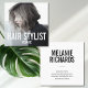 Tarjeta de visita estilista moderna con foto cuadrada. El diseño elegante y limpio de esta tarjeta de visita permite mostrar su propia foto en la parte delantera de la tarjeta. Su profesión y nombre están estilizados en letras modernas y rectas de tipografía audaz. Diseño adecuado para peluqueros, maquilladores, fotógrafos bloggers y otros negocios creativos. La foto en la tarjeta de visita es sólo una foto de ejemplo, por favor, sube la tuya propia. Diseñado por Luxbelle.