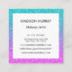 Esta tarjeta de visita moda, girly y cuadrada glam tiene un fondo sombrío rosa/ azul/ turquesa/ aqua/ lilac/ purpurina púrpura en ambos lados. En la parte delantera de la tarjeta de visita está tu nombre en un elegante guión negro con un gran monograma inicial en blanco detrás. Luego al dorso está tu nombre, título de trabajo y detalles de contacto con un fondo blanco. Personalice fácilmente esta tarjeta de visita. Haga clic en "personalizar más adelante" para cambiar el color del texto, el estilo y el tamaño del tipo de letra. Esta tarjeta de visita es perfecta para un artista de maquillaje, peluquero, asesor de belleza, planificador de eventos o propietario de un salón.