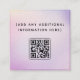 Esta moderna tarjeta comercial cuadrada de código QR, de gradiente púrpura rosa, cuenta con un diseño de gradiente negrita con un código QR personalizado único para facilitar el escaneo. Perfecto para administradores de medios sociales, influyentes y profesionales modernos del marketing, combina el estilo geométrico con un aspecto elegante y moderno. Ideal para el trabajo en red, enlazando a tu sitio web o plataformas, esta tarjeta de visita de medios sociales ofrece un formato cuadrado púrpura moderno y llamativo.