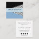 Elegantes, elegantes y sofisticadas tarjetas de visita con zigzag (chevron) de color gris y blanco con parches de color azul y negro. Diseño moderno y de moda, perfecto para los amantes del zigzag.