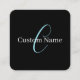Tarjeta De Visita Cuadrada Guión curativo editable Monograma Blanco azul negr