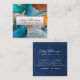 Tarjeta De Visita Cuadrada Guión estilo acuarela de mármol turquesa plateado