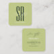 Tarjeta De Visita Cuadrada Hair stylist modern green monogram initials