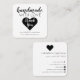 Tarjeta De Visita Cuadrada Hecho a mano con amor Sencillo Corazón Blanco Negr