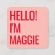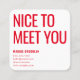 Tarjeta De Visita Cuadrada Hola mínima | Moderno nombre simple y limpio rojo