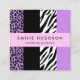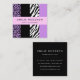 Elegantes, elegantes y sofisticadas tarjetas de visita con estampado de leopardo y cebra en color púrpura. Diseño moderno y de moda, perfecto para los amantes de la impresión animal.