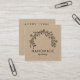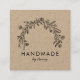 Logotipo floral rústico Kraft Square Business Card, con flores dibujadas a mano. Tarjetas de visita sencillas y rústicas para sus productos hechos a mano.