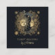 El diseño de la tarjeta de visita del lector de tarot presenta un elegante ilustracion místico de sol y luna con estrellas, dorado amarillo sobre negro.