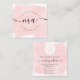 Tarjeta De Visita Cuadrada Logo de las iniciales de maquillaje acuarela rosa