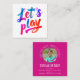 Esta linda tarjeta de juegos incluye en el frente un guión de broche de acuarela que dice "Vamos a jugar" contra un fondo blanco limpio, lo que la hace brillante, llamativa y memorable. La parte posterior muestra un diseño azul vibrante con espacio para una foto y detalles de contacto, lo que garantiza una comunicación fácil. Perfecto para intercambiar información en escuelas, parques de juegos y eventos comunitarios, esta tarjeta de personalizable ayuda a los padres a conectarse y planificar las fechas de reproducción sin esfuerzo. Es una herramienta de trabajo en red práctica y elegante, diseñada para padres y cuidadores que quieran organizar encuentros de diversión para niños o chicas. Están disponibles en una gran variedad de colores, sólo tienes que elegir el que se adapte a tu estilo.