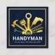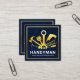 Una cubierta de grunge azul se acentúa con un marco de oro cuadrado que tiene un diseño de casa de herramientas manuales de oro. Cada herramienta puede representar algunos de los servicios que puede ofrecer. Cerca de la base se encuentra el nombre comercial "HANDYMAN" y una opción de título de eslogan que puede cambiar para adaptarse a sus propias necesidades de servicio. Al dorso, se utiliza la misma cubierta de diseño. En la parte superior hay un logotipo de martillo dorado que puede utilizar seguido de su prestigioso nombre, los detalles de contacto y una opción de slogan para publicitar sus servicios. Un gran diseño para temas prácticos y de construcción. #handyman #homerepair #constructora de casas #edificios #edificios #artesanías #remodelación #renovación #carpenter #carpentry #construcción #zazzlemade