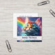 Tarjeta De Visita Cuadrada Mascota del gato arcoiris sentada y paseador de pe