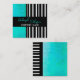 Tarjeta De Visita Cuadrada moda moderna turquesa audaz sobre rayas negras